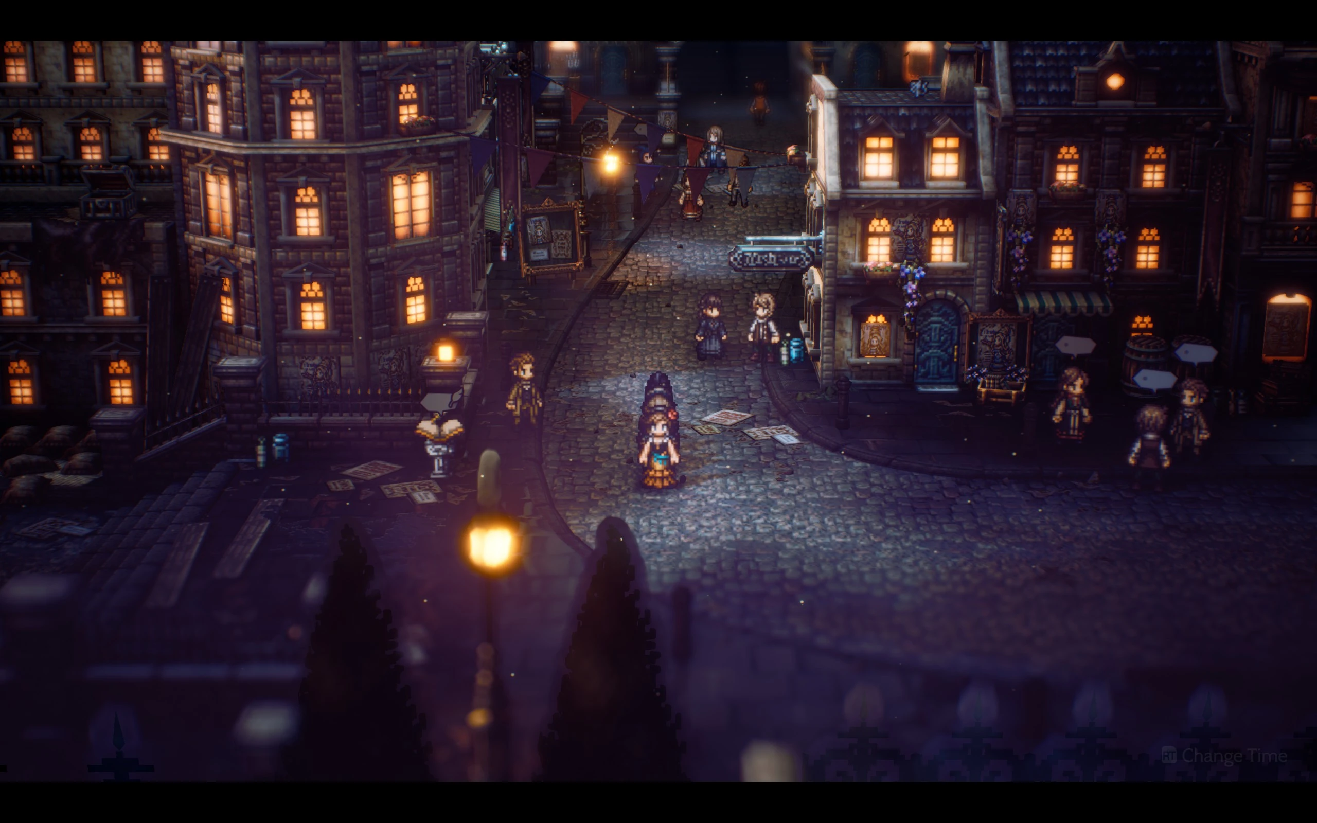 [she's only half-concentrating, so there's just a cobblestone road and that's it.]